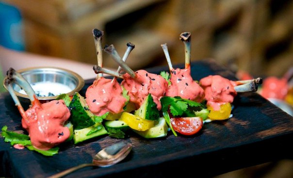 Заказать стоит, например, печенки куриные в сметанном соусе с гарниром из гречки (480 рублей) или манты с бараниной или телятиной (450–500 рублей). Хинкали с бараниной стоят 450 рублей, сочные пельмени — 400–450 рублей в зависимости от начинки. Кутабы (2 штуки с мясом, с зеленью, с сыром, с тыквой, с айвой) обойдутся в 300 рублей, фирменный кутаб «Бараshка» на мангале — в 500 рублей.