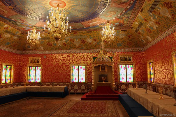 Наверху — старообрядческая домовая церковь-часовня. О её существовании нельзя догадаться при осмотре здания с улицы. А ещё в особняке поражают окна: они разной формы, расположены на разных уровнях; решётки на окнах — из замысловатых волнообразных узоров.