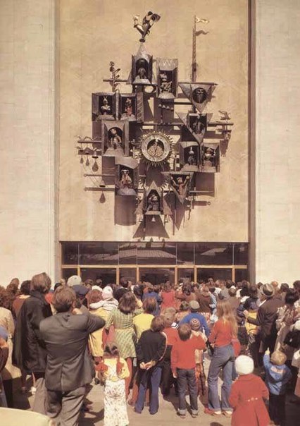 Через час после «часа волка». На фото — часы на фасаде театра кукол им.С.Образцова. В прошлом веке любители выпить собирались у гастронома, который находился недалеко от театра и ждали, когда же наступит час Х. О том, что долгожданные 11 часов наступили, им сообщал волк, «житель» домика, заменивший цифру одиннадцать. А когда началась антиалкогольная кампания и водку стали продавать с 14, стали говорить «сова открыла глазки»
