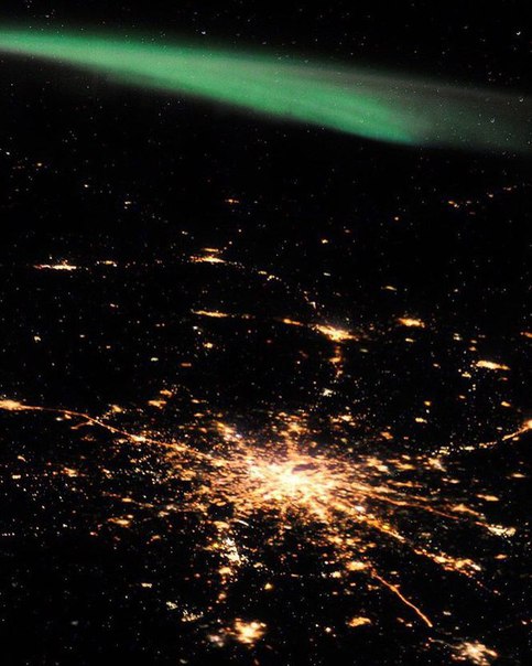 Самый оригинальный снимок Москвы в День города был сделан космонавтами. Фотография космонавта Сергея Рязанского с борта МКС.