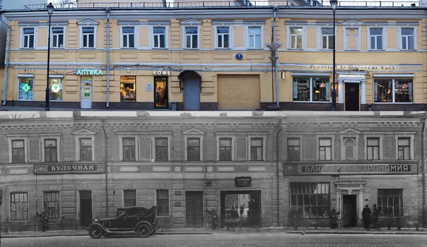 Сквозь века. Главный дом усадьбы Щербакова — Арбатских на Покровке, 9. Сейчас и в 1930-е.