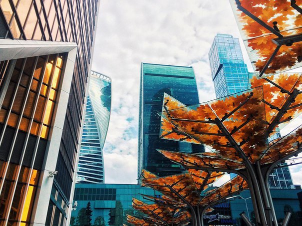 Стеклянные деревья в городе из стекла