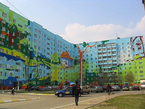 Этот город — единственное место в Московском регионе, куда приезжают специально для того, чтобы посмотреть на панельные многоэтажки. Стоят они на улицах Гурьева, Михалевича и Коммунистической. У них обычная планировка и ничем не выделяющиеся жильцы. Зато фасады домов раскрашены яркими кислотными красками. На стенах — бабочки, горы, леса, поля. И почему-то голландские ландшафты. Ничего подобного в Москве, например, нет.