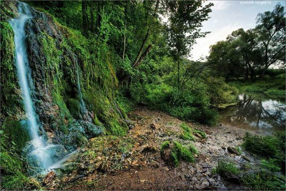 У моста через реку свернуть на накатанную колею, которая приведет прямо к водопаду, образованному одним из многочисленных родников. В последние годы это место стало безумно популярным. К водопаду едут туристические автобусы, у него ставят палатки туристы.