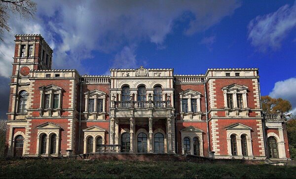 Этот дом-дворец в стиле Ренессанса стоит на вершине холма. В лесопарк спускается парадная лестница. Постройка объединена террасами и балконами с окружающим ландшафтом. Самая выдающаяся из них – терраса со стороны парка с оригинальным ломаным абрисом. Она обрывается возле речки пологим скатом, окруженным по бокам лесопарком, который, к сожалению, находится сейчас в запущенном состоянии. Здесь на ум приходит сказка о спящей красавице. Кажется, что она спит где-то здесь, и ее сон охраняет этот лес.