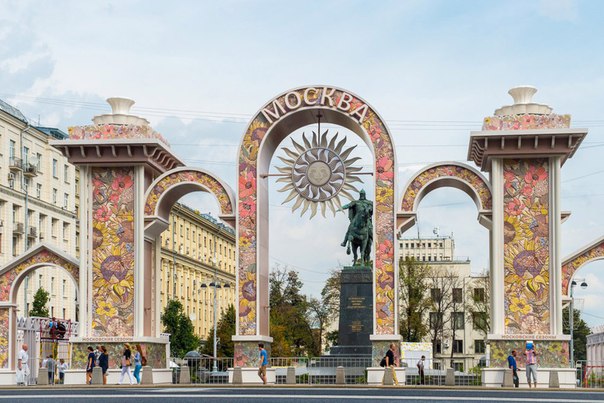 Уже видели эти праздничные арки в центре Москвы? Их установили ко Дню города, который в этом году Москва празднует 10 и 11 сентября. Эти арки воспроизводят облик знаменитого арочного ансамбля первой московской послевоенной ярмарки 1947 года, которая прошла на Пушкинской площади и получила название «Весенний базар». Опыт проведения ярмарки оказался успешным. Следующий сезонный «базар» на Пушкинской открылся в сентябре того же года и был приурочен к 800-й годовщине основания Москвы. Сегодня увидеть копии того арочного ансамбля можно на Тверской и Манежной площадях, в Новопушкинском сквере, на площади Революции и, конечно же, на самой Пушкинской площади. Высота каждой из арочных композиций – 14 метров, а ширина – 33 метра. Художественная концепция арок также предусматривает архитектурную подсветку.