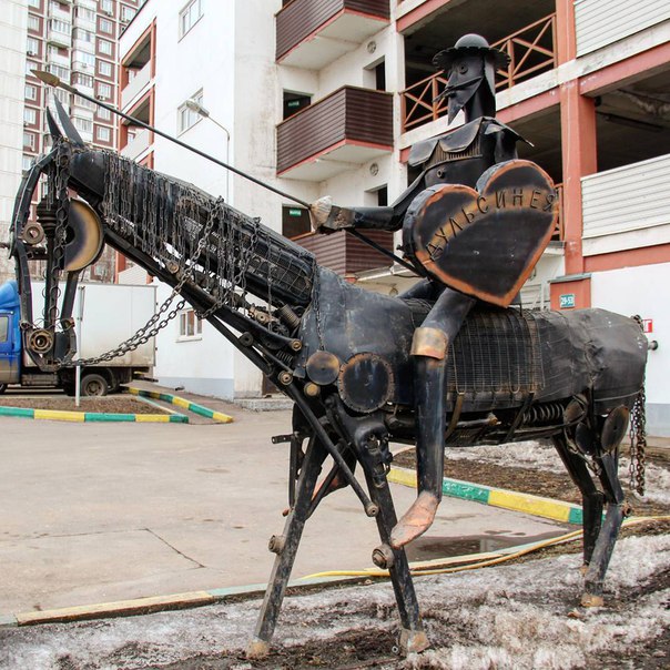 Хитроумный идальго Дон Кихот Ламанчский у гаражей на Южнопортовой улице. На щите надпись «Дульсинея» Опубликовано: 19.09.2016